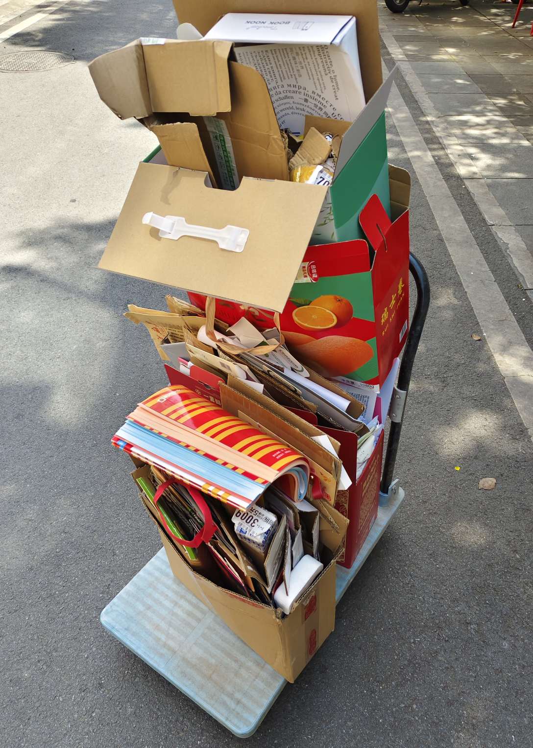 现今网购已成居家生活必备技能,只需躺坐家中,手指头点点选购,自有快递小哥及时送达。购得多了,各种包装盒也越来越多,由于每次拆盒都在屋头进行,取出商品后留下的空盒就随手扔在角落并没有及时处理,日复一日便有了些斤两。小区附近正好有一家废品收购站,于是凑到一定数量就会拉出去称斤卖了。虽是在鸡脚杆上刮油,但总是自家的油水,有比无好。今日卖得8.5元。